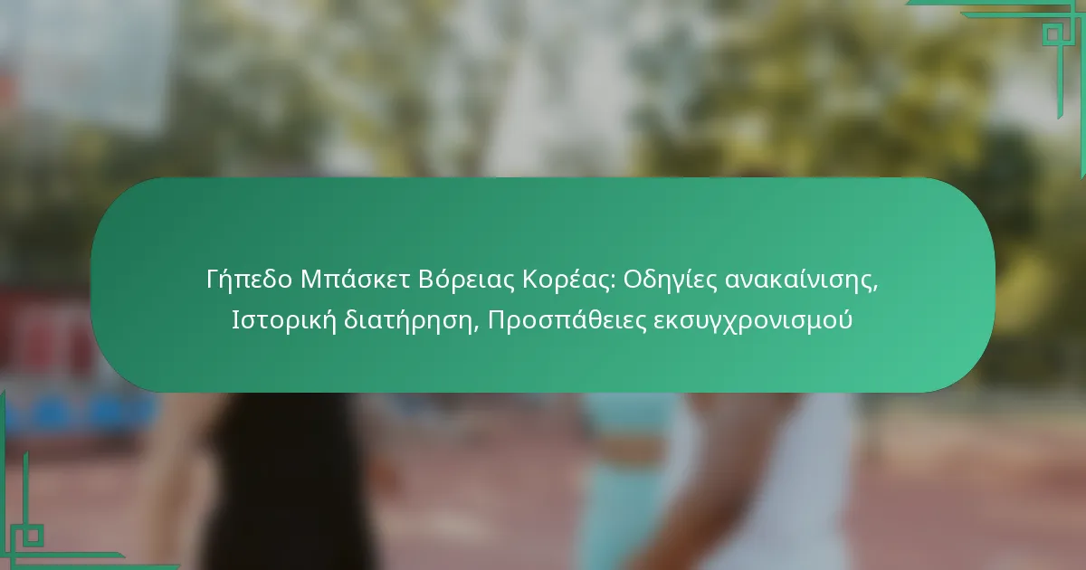Οι κατευθυντήριες γραμμές ανακαίνισης για τα γήπεδα μπάσκετ στη Βόρεια Κορέα τονίζουν τη σημασία της διατήρησης της ιστορικής ακεραιότητας ενώ ενσωματώνουν σύγχρονα χαρακτηριστικά. Αυτές οι προσπάθειες αποσκοπούν στη διατήρηση της πολιτιστικής κληρονομιάς και της ταυτότητας της κοινότητας, διασφαλίζοντας ότι τα γήπεδα αντικατοπτρίζουν την εξέλιξη του μπάσκετ στη χώρα. Με την ενσωμάτωση προηγμένων τεχνολογιών και βιώσιμων πρακτικών, οι πρωτοβουλίες εκσυγχρονισμού ενισχύουν τη λειτουργικότητα ενώ σέβονται την αρχιτεκτονική κληρονομιά αυτών των σημαντικών αθλητικών χώρων.