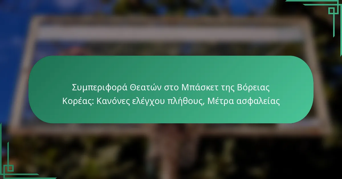 Στη Βόρεια Κορέα, η συμπεριφορά των θεατών στους αγώνες μπάσκετ διέπεται από αυστηρούς κανόνες ελέγχου του πλήθους, σχεδιασμένους να διατηρούν την τάξη και την πειθαρχία μεταξύ των παρευρισκομένων. Αυτοί οι κανονισμοί δεν καθορίζουν μόνο τις αποδεκτές συμπεριφορές, αλλά περιγράφουν επίσης τις συνέπειες για τις παραβάσεις, αντικατοπτρίζοντας το πολιτιστικό και ιστορικό πλαίσιο της χώρας. Επιπλέον, τα εκτενή μέτρα ασφαλείας, συμπεριλαμβανομένης της παρουσίας προσωπικού και των λεπτομερών διαδικασιών ελέγχου, διασφαλίζουν την ασφάλεια όλων των θεατών, ενώ ενισχύουν μια μοναδική ατμόσφαιρα που διαμορφώνεται από την πολιτική ιδεολογία και την εθνική υπερηφάνεια.